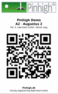 Scan QR-koden herunder med din Smartphone. Indtastningssiden for hul 2 åbner, – vælg turnering.